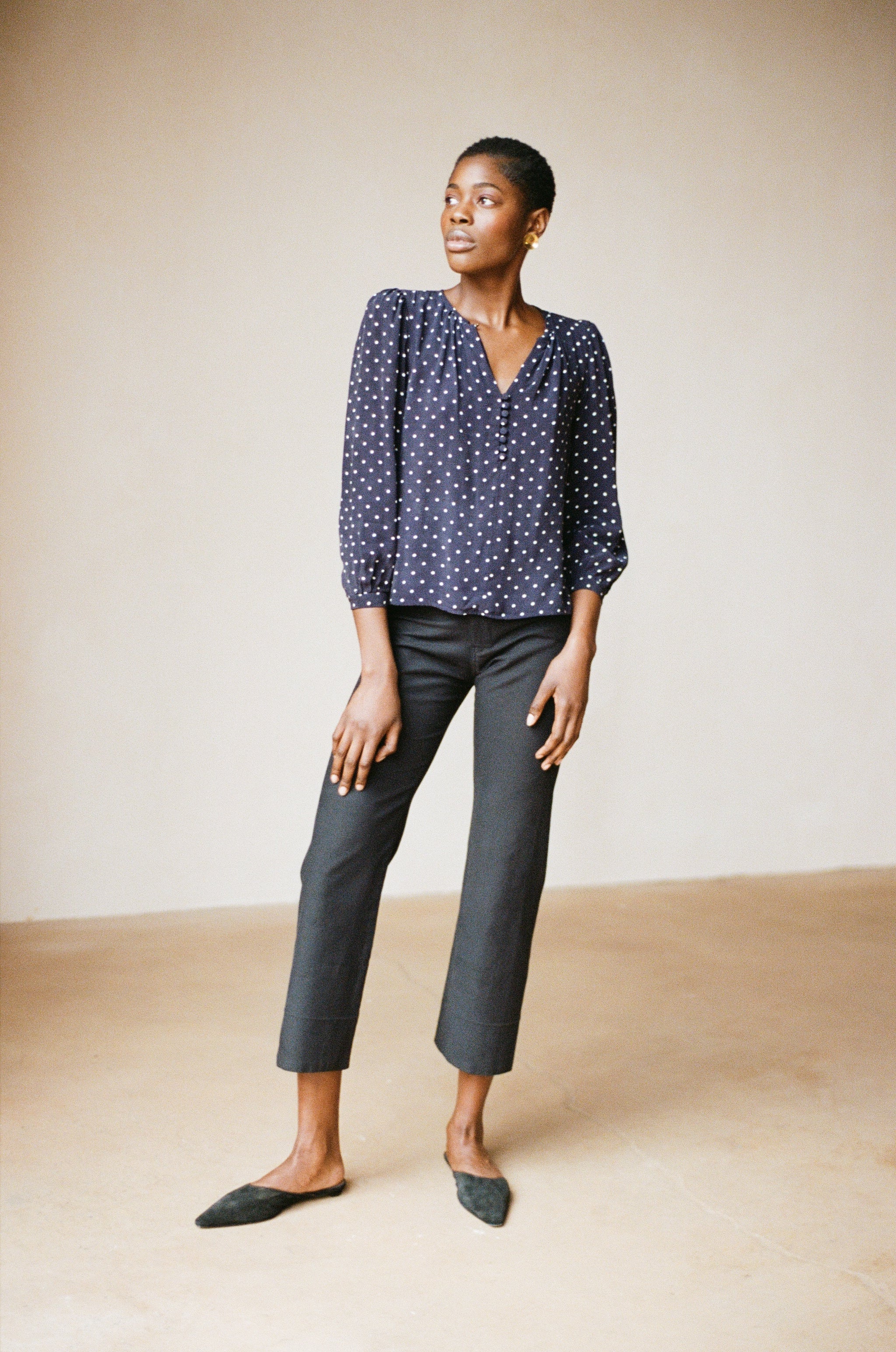 ALMOND BLOUSE | dotted navy | WAREHOUSE SALE
